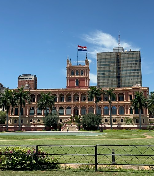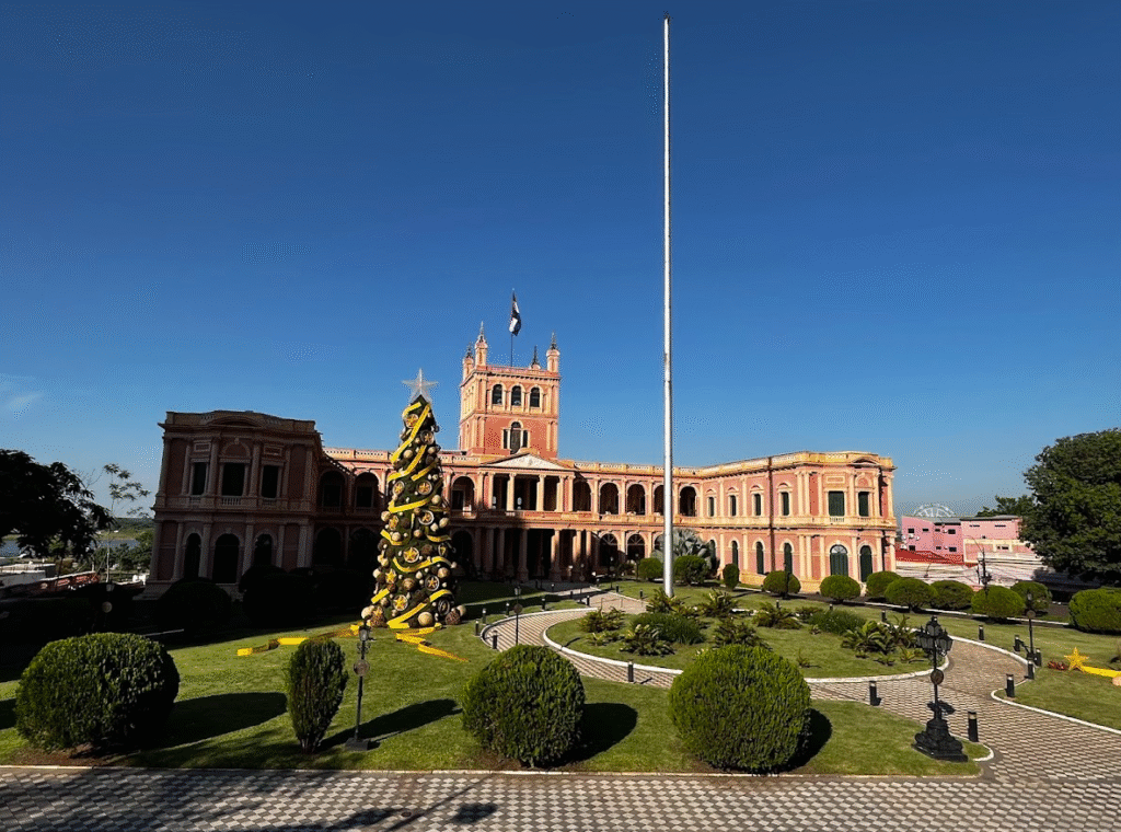 O primeiro ponto foi o Palácio de Lopez, um imponente prédio que hoje abriga o gabinete presidencial e a sede do governo. A construção do Palácio de los López começou em 1857, durante o governo de Carlos Antonio López, e foi idealizada como residência de seu filho, Francisco Solano López, que depois se tornou presidente. O projeto contou com arquitetos e engenheiros europeus, e muitos dos materiais usados vieram da Europa — o que dá ao prédio uma arquitetura neoclássica e elegante, com influência francesa e italiana. As obras foram interrompidas pela Guerra da Tríplice Aliança, nos anos de 1864 até 1870 (período em que serviu como quartel militar) e só foram totalmente concluídas no início do século XX. O palácio tem três andares e uma bela fachada branca e rosada, com colunas e varandas que lembram os palácios europeus do século XIX. São realizadas visitas guiadas no interior do prédio, mas que precisam ser agendadas com antecedência visto que são disponibilizados ingressos limitados por horário. É possível reservar os ingressos pelo site Palacio de López – asunciON!.