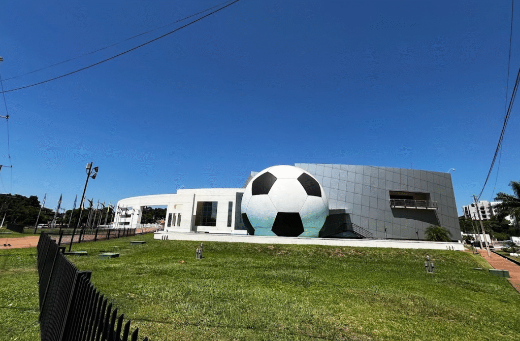 Mesmo com a escassez de informações, embarquei. O voo de Campinas/SP até Assunção demorou pouco mais de duas horas, e após passar pela imigração já fui logo fazer o câmbio de dinheiro para a moeda local (Guaranis). Até pensei em comprar um chip telefônico para facilitar as coisas, mas como a minha estadia por lá seria curta, resolvi confiar nos mapas offline que havia baixado, na disponibilidade de wi-fi dos estabelecimentos comerciais, além da disposição das minhas pernas para longas caminhadas (que curiosamente são a minha parte favorita dos rolês). O Wi-fi do aeroporto internacional Silvio Pettirossi, que é a principal porta de chegada e saída do país por via aérea, foi suficiente para pedir o meu primeiro uber no país, com destino à primeira parada: a sede da Confederação Sul-Americana de Futebol, também conhecida como CONMEBOL. Havia descoberto horas antes que ela estava situado na capital paraguaia, além de que junto à esta havia o Museu do Futebol Sul Americano, presente em todos os resultados de pesquisas de “lugares pra visitar em Assunção” que fiz.