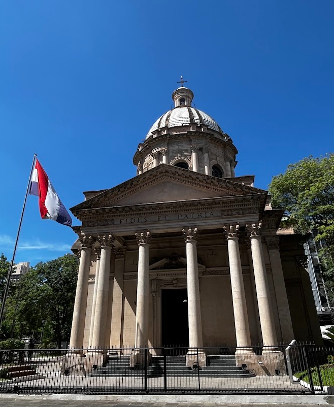 O Panteão Nacional funciona como mausoléu do Estado, abrigando os restos mortais de várias figuras de grande importância na história paraguaia, como Carlos Antonio López (primeiro presidente constitucional do país), Francisco Solano López (presidente do país entre 1862 e 1870) e José Félix Estigarribia (herói da Guerra do Chaco contra a Bolívia, junto com sua esposa). Além disso, o Panteão também homenageia as crianças mártires da Batalha de Acosta Ñu e dos Soldados Desconhecidos, entre outros personagens históricos de relevância nacional. Na ocasião estava fechado para visitas, sendo possível observar apenas a área externa. Conversando com locais, descobri que é comum que sejam realizadas apresentações artísticas e musicais em frente a este. De fato, passei mais tarde em frente e estava acontecendo uma apresentação com DJ e estrutura de som.