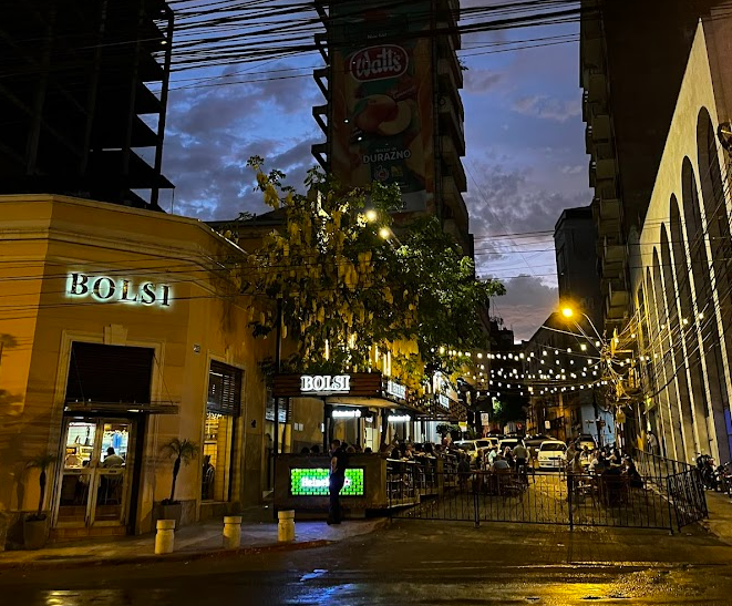 A região do centro histórico de Assunção, embora tenha causado uma certeza estranheza pela presença em massa dos policiais, aparentou ser bastante tranquila. Durante a noite, são muitas as opções de restaurantes, bares, pizzarias e até mesmo baladas. Dois restaurantes bem tradicionais que visitei mas acabei não registrando foram o Lido Bar (Independencia Nacional esq, Asunción 001101, Paraguai) que inclusive registrei o meu e-mail para usar o wi-fi e recebo até hoje mensagens com promoções e eventos rsrs, além do Bolsi (Estrella 399 esq, Asunción 001101, Paraguai), que tem as tradicionais mesas dispostas na rua, comuns em outras capitais da América do Sul.