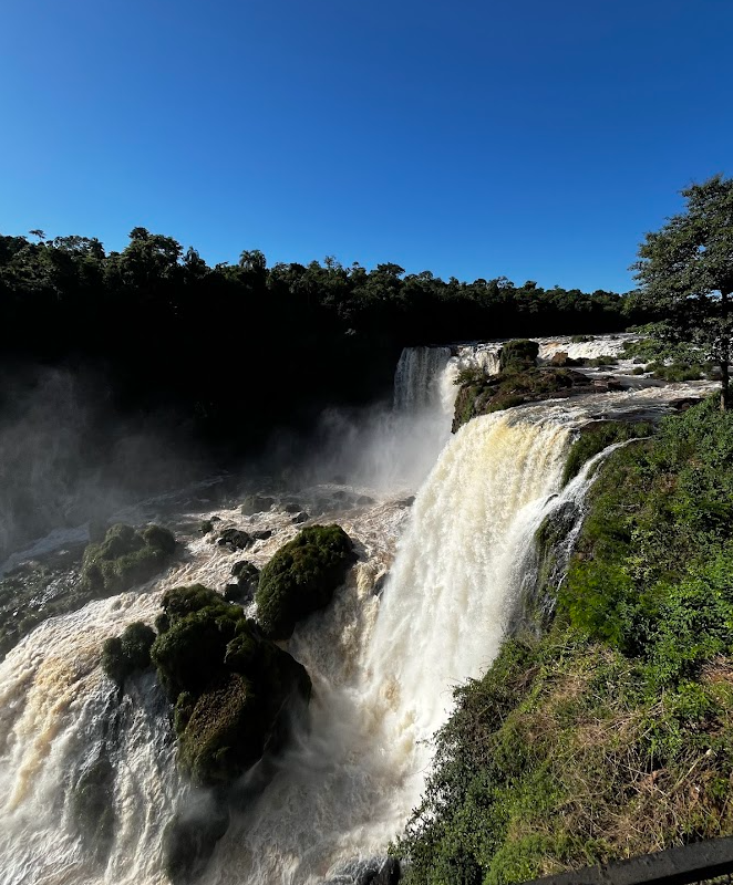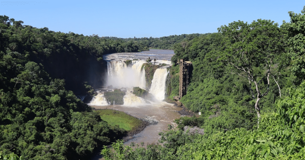 Sobre os Saltos de Monday (lê-se Mondaí), são cachoeiras impressionantes, formadas pelo Rio Monday, que deságua no rio Paraná em um desnível de cerca de 45 metros. São uma das maiores e mais importantes cachoeiras do Paraguai, sendo muitas vezes comparada a atrativos como o Salto Cristalino, mas com menor fluxo turístico, oferecendo um contato mais tranquilo com a natureza. Embora a atividade turística seja explorada a vários anos no local, tomei conhecimento deste lugar pouco tempo antes da viagem. Também conhecidas como as Cataratas Paraguaias, podem ser visitadas através de dois sítios diferentes. Fui primeiramente no Parque Municipal Monday, que está situado mais ao final da avenida. O ingresso custou certa de 80 reais e o local possui uma estrutura bem completa, contando até mesmo com elevador panorâmico.