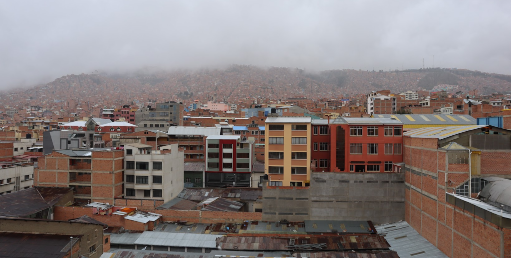 Chegando em La Paz, peguei um Uber usando o Wi-fi do aeroporto mesmo e me dirigi até o hotel onde havia reservado essa primeira noite, bem na região central da cidade. Estava mais cansado que tudo, só tomei um banho e dormi. Ao acordar e abri a janela tive a primeira visão da cidade, e era exatamente como eu havia visto na internet e nos livros de geografia lá do ensino fundamental, quando se falava sobre as características geográficas do país e da tão temida altitude que na capital Boliviana chega a superar os 3.500 metros.