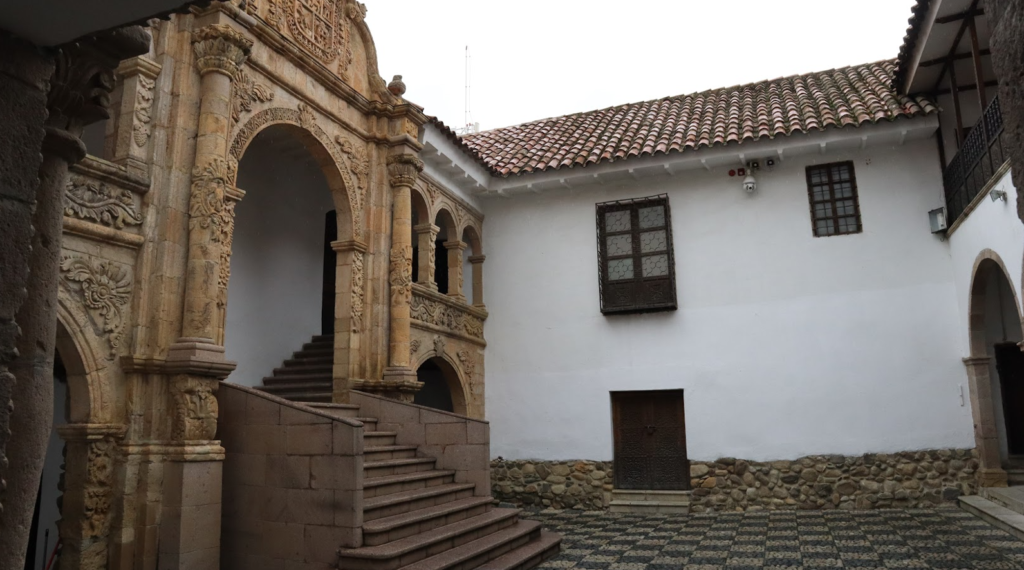 Detalhes do edifício do museu, construído no estilo colonial barroco mestizo do século XVIII