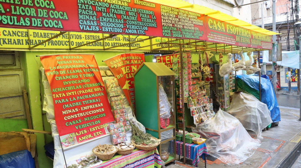 • Produtos esotéricos: como incensos, poções e velas, vendidos por curandeiros locais conhecidos como yatiris;