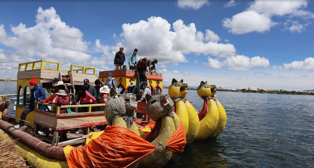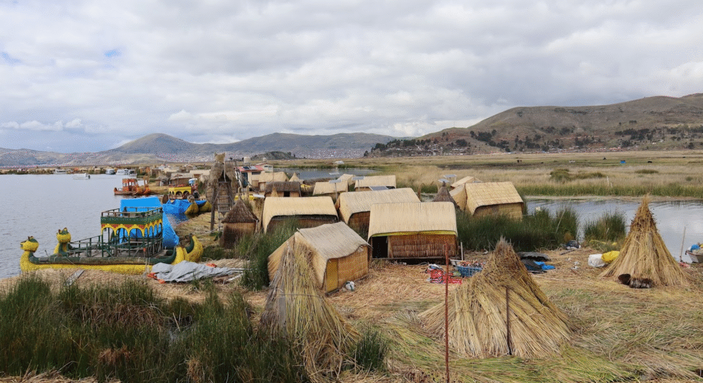 As Ilhas de Uros são uma das atrações mais curiosas do Lago Titicaca, no lado peruano. Elas são habitadas por uma comunidade indígena que mantém uma forma de vida única, vivendo em ilhas artificiais feitas de totora, uma planta aquática abundante na região (equivalente ao junco, no Brasil) e que possui propriedades extremamente resistentes à água, sendo utilizada até mesmo na alimentação dos mesmos (e por fins de curiosidade, tem gosto de alface rsrs). A comunidade Uros tem uma história que remonta a mais de 3.000 anos, sendo que a origem das ilhas artificiais remonta ao período pré-colombiano, quando os Uros, para se protegerem de invasões, decidiram viver em ilhas flutuantes, longe das terras continentais.