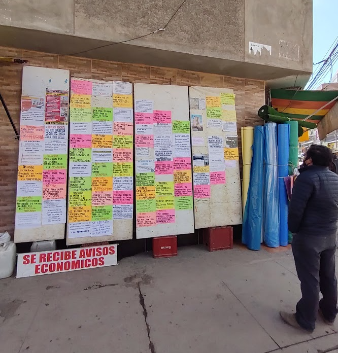 Mural com anúncios de vagas de emprego, no centro de Puno. Um verdadeiro LinkedIn Inca